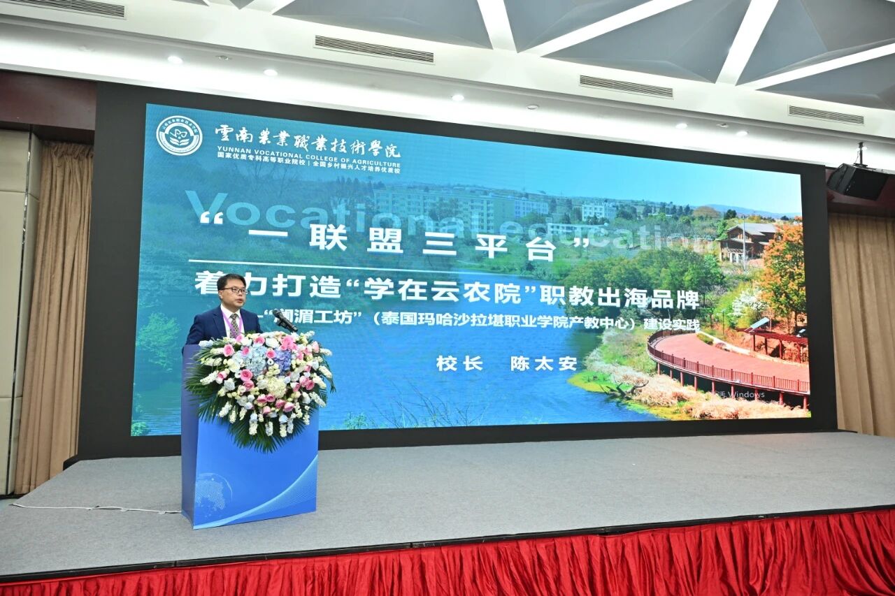 随后,陈太安校长汇报澜湄工坊建设经验,介绍课程共建、师资互派、实训共享等实践路径,内容贴合区域农业需求,获广泛认可。