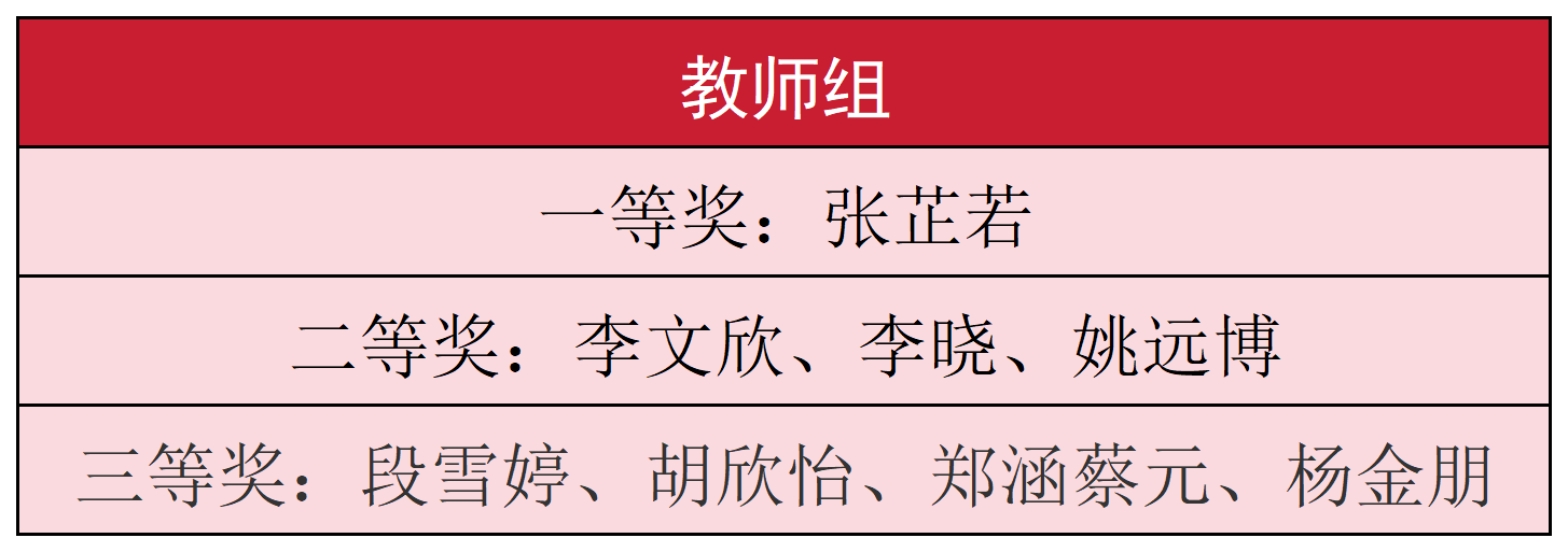经评委团专业、严谨、公正评审,本次大赛分别评出教师组、学生组各级奖项,一等奖选手将代表学校晋级全省复赛。