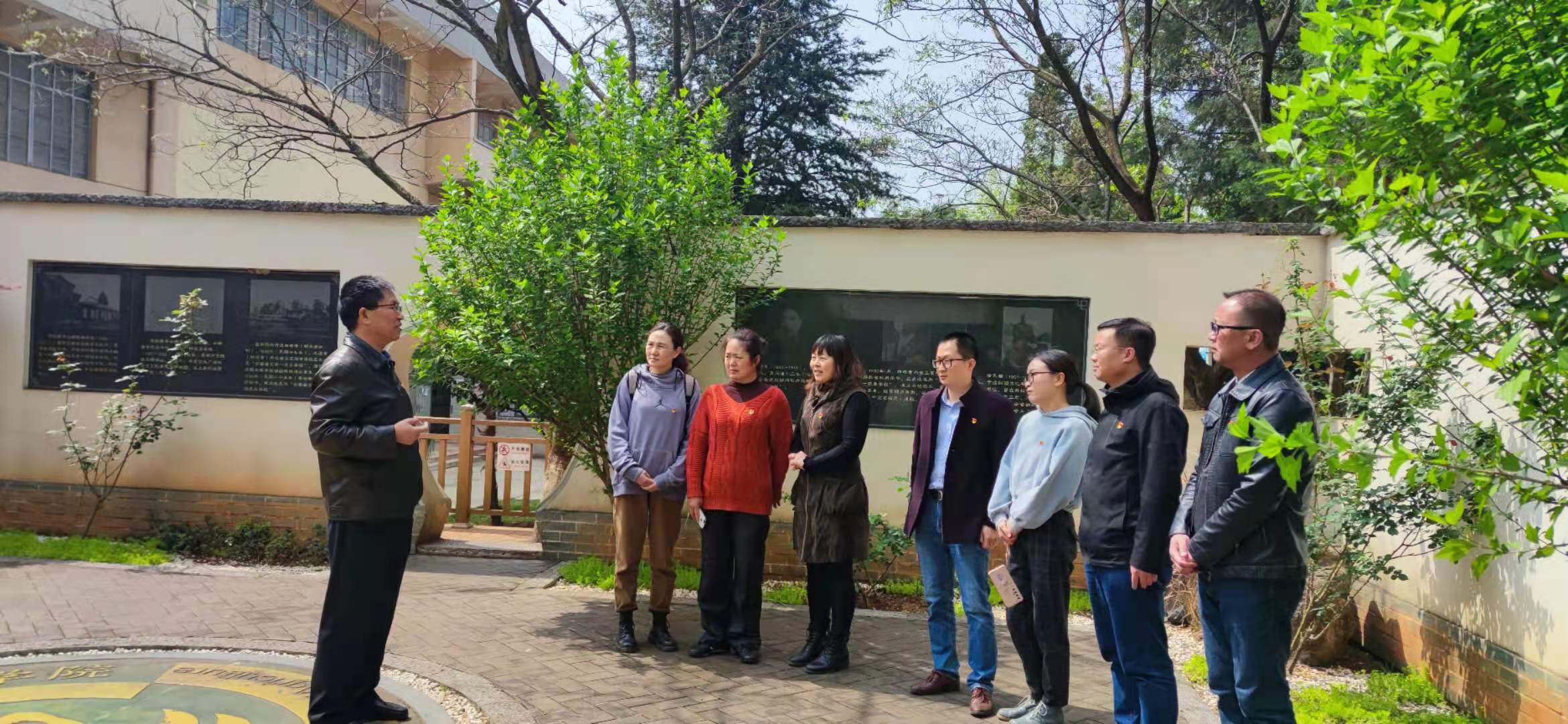 在校史走廊,崔金赋同志为大家讲述了朱德、王德三、杨文清等革命先辈的故事,带领大家回顾了云南农业职业技术学院成立118年以来校史上的大事记,以此在清明之际祭奠英烈,让全体党员深刻领悟农职传统。同时,崔金赋同志讲述了自己在农职院近22年的工作历程和心得感悟,要求支部每一名党员一定要对党忠诚老实,光明磊落坦荡做人,团结一心努力干事。