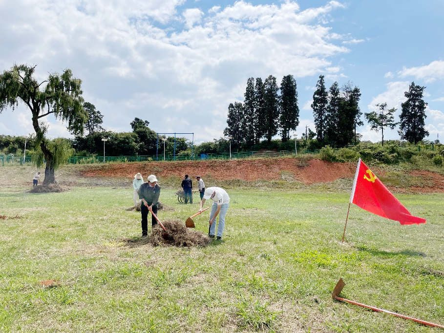 党员同志清除运动场杂草