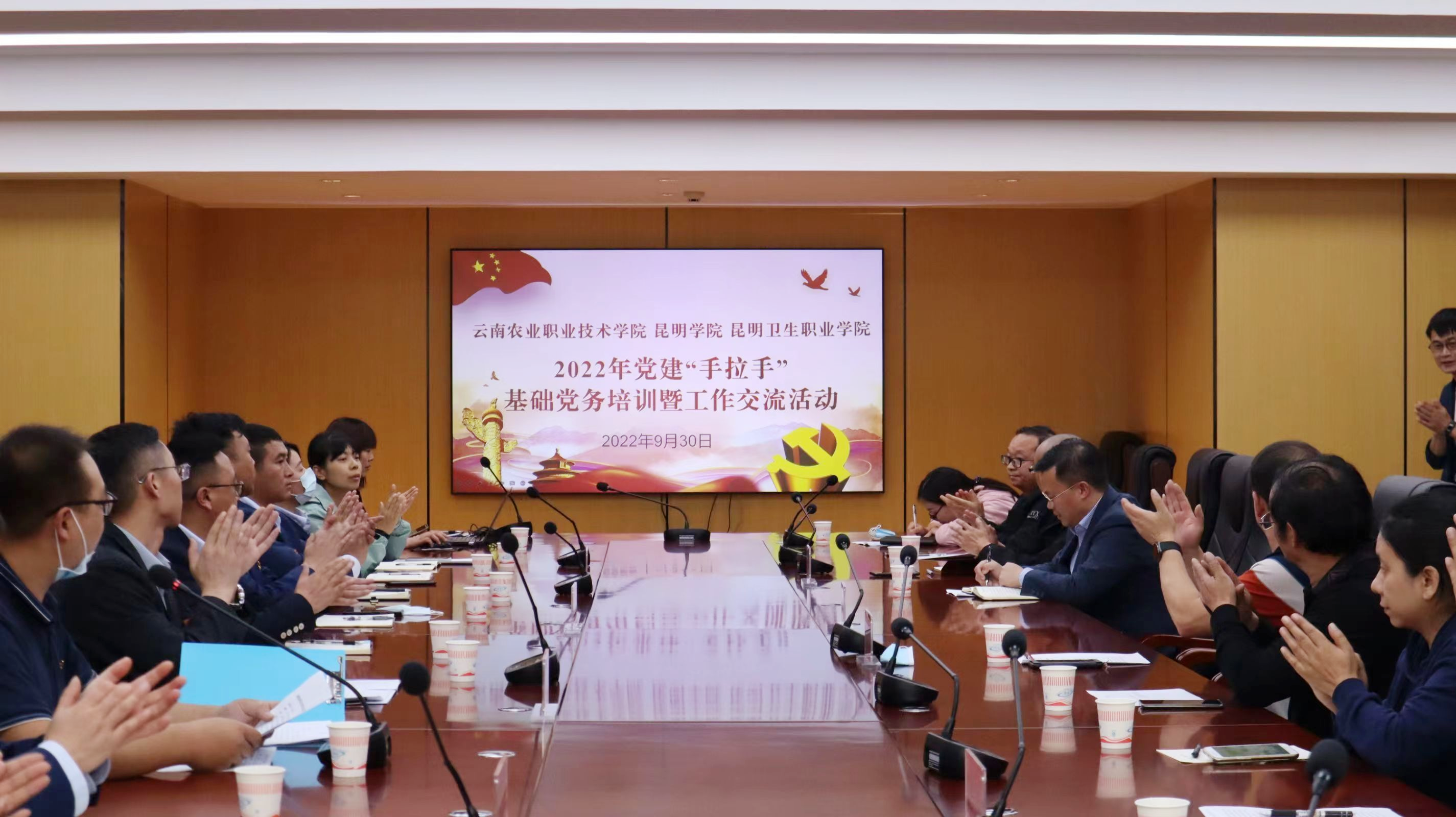9月30日下午,我院与昆明学院、昆明卫生职业学院联合开展了2022年第三季度党建“手拉手”基础党务培训暨工作交流活动。此次活动在昆明卫生职业学院举办,由云南农业职业技术学院牵头组织,3所学校相关部门、二级学院党组织负责人共计30余人参加共建活动。