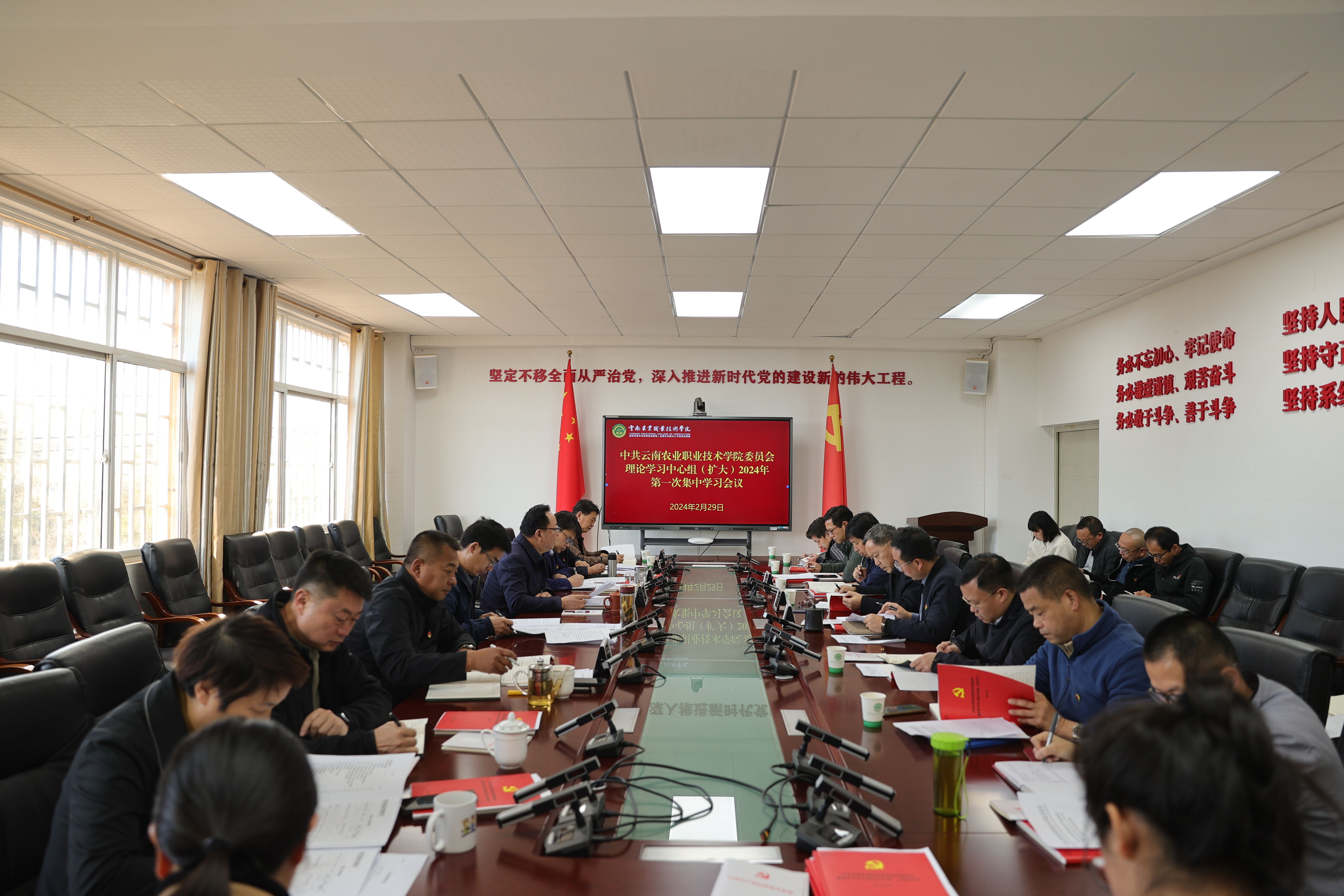 会议由文俊书记传达学习习近平新时代中国特色社会主义思想主题教育总结会议精神、全省学习贯彻习近平新时代中国特色社会主义思想主题教育总结会议精神、《中共中央办公厅关于巩固拓展学习贯彻习近平新时代中国特色社会主义思想主题教育成果的意见》及纵深推进清廉云南建设暨全省正风肃纪警示大会会议精神。党委副书记、院长陈太安传达学习中央一号文件、2024年全国教育工作会议和云南省教育工作会议精神;党委副书记伍学龙传达学习中共中央印发《党史学习教育工作条例》《中国共产党巡视工作条例》、纪委书记冯志宏传达学习新修订《中国共产党纪律处分条例》、习近平总书记在二十届中央纪委三次全会上的重要讲话精神、省纪委十一届四次全会精神。