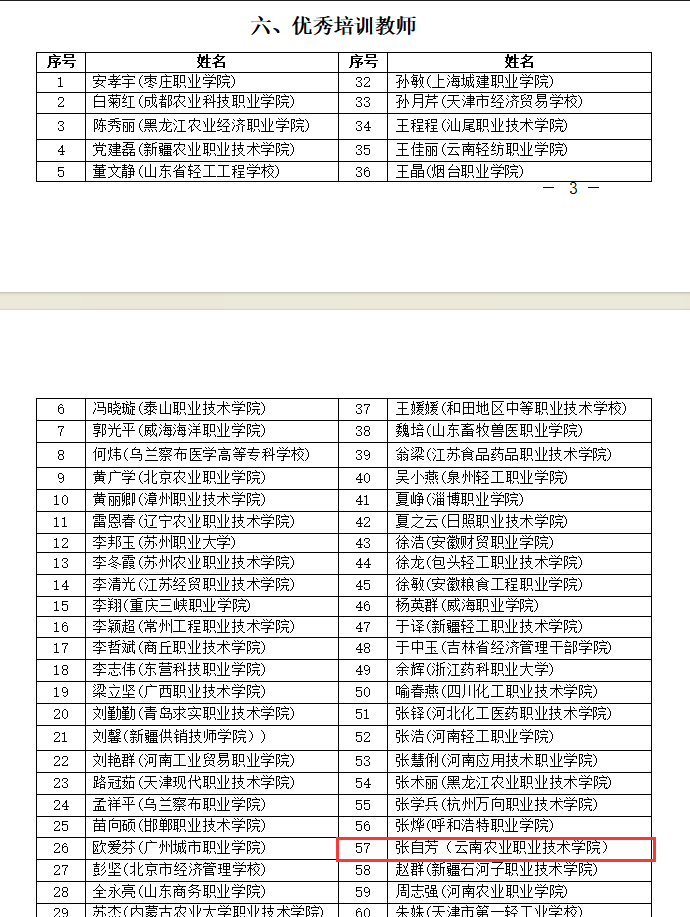 根据食品合规管理职业技能专家委员会文件《关于公布2023年度1+X食品合规管理职业技能等级证书试点工作优秀院校及个人的通知》(合规技能专委会字〔2024〕5号),学院在2023年度的试点工作中荣获“领军院校奖”和“全国考核优秀单位”,张自芳和张云蓉老师分别荣获“优秀培训教师”和“先进工作者”荣誉称号。