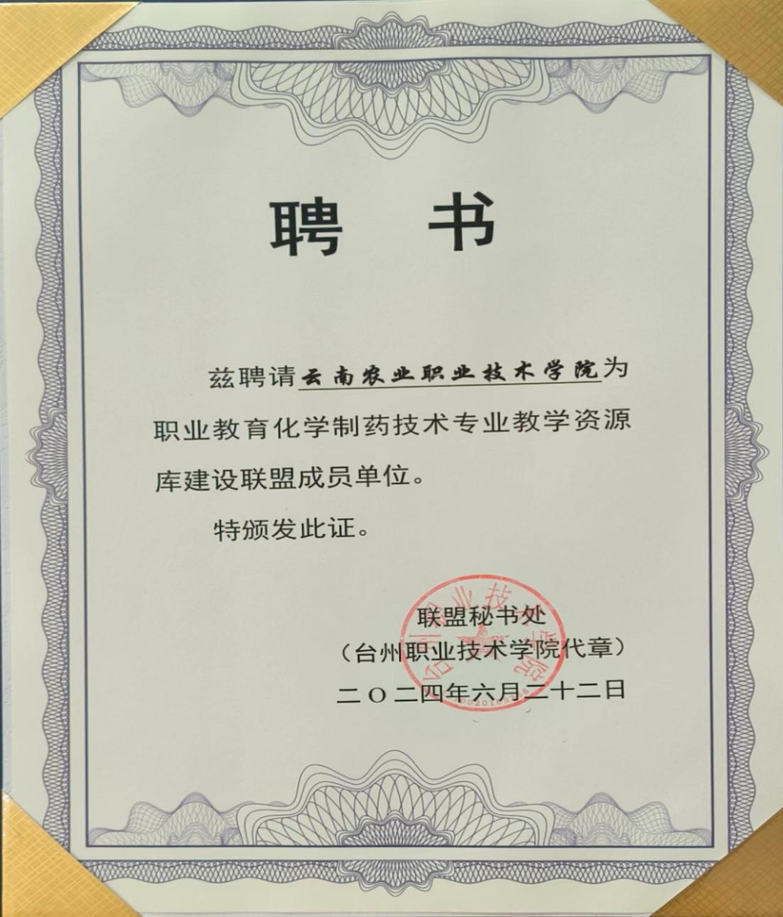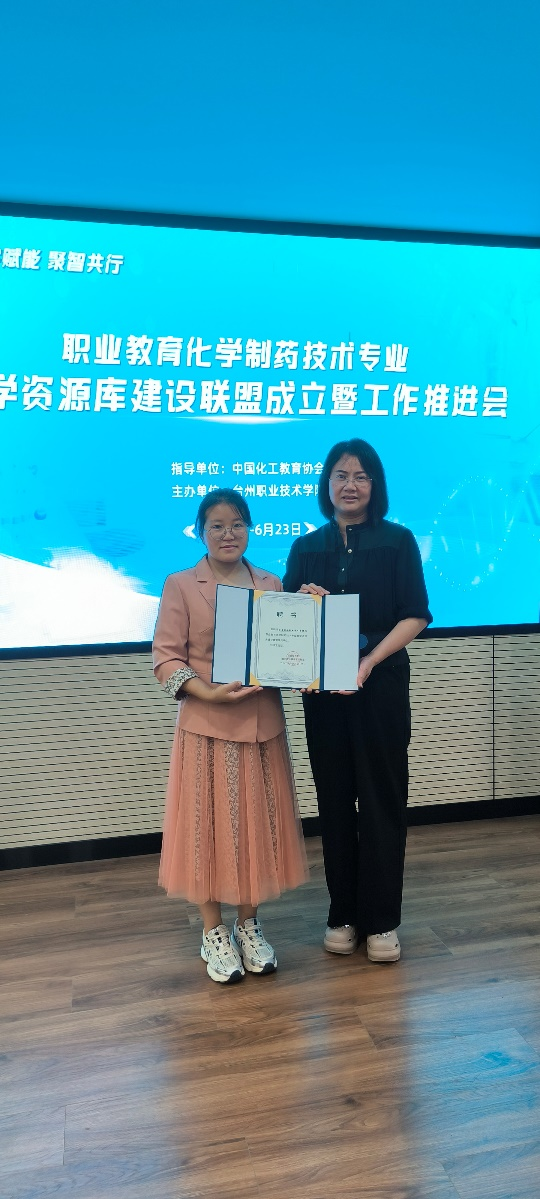 2024年6月21日—23日,职业教育化学制药技术专业教学资源库建设联盟成立暨工作推进会议在台州职业技术学院成功召开。来自全国各地的教育专家、学者及一线教师齐聚一堂,共同探讨化学制药技术专业教学资源库的建设与发展。食品药品与大健康学院教师团队受邀参会,学院受聘为联盟成员单位。