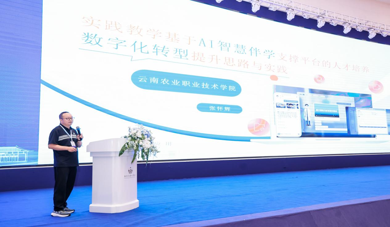 8月6日上午同期举办食品检验检测产教融合、环境监测产教融合、生物医药产教融合、建筑数智化技术赋能教学质量升级创新发展、职业院校国产仪器设备高质量发展等五大分论坛。张怀辉老师在食品检验检测产教融合分论坛上作了《实践教学基于AI智慧伴学支撑平台的人才培养数字化转型提升思路与实践》的专题报告。
