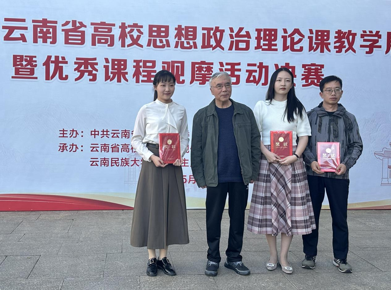 通知中心近日,由中共云南省委教育工委主办的2025年云南省高校思想政治理论课教学展示暨优秀课程观摩活动圆满落幕,马克思主义学院陈雨知老师荣获《习近平新时代中国特色社会主义思想概论》组一等奖,并将参加教育部第四届全国高校思政课教学展示活动赛前集训;龙臻老师荣获《毛泽东思想和中国特色社会主义理论体系概论》组二等奖;赵晓玮老师荣获《形势与政策》组三等奖;张馨予老师荣获《思想道德与法治》组优秀奖,充分展现了学校思政教育的卓越成果和教师的深厚教学功底。
