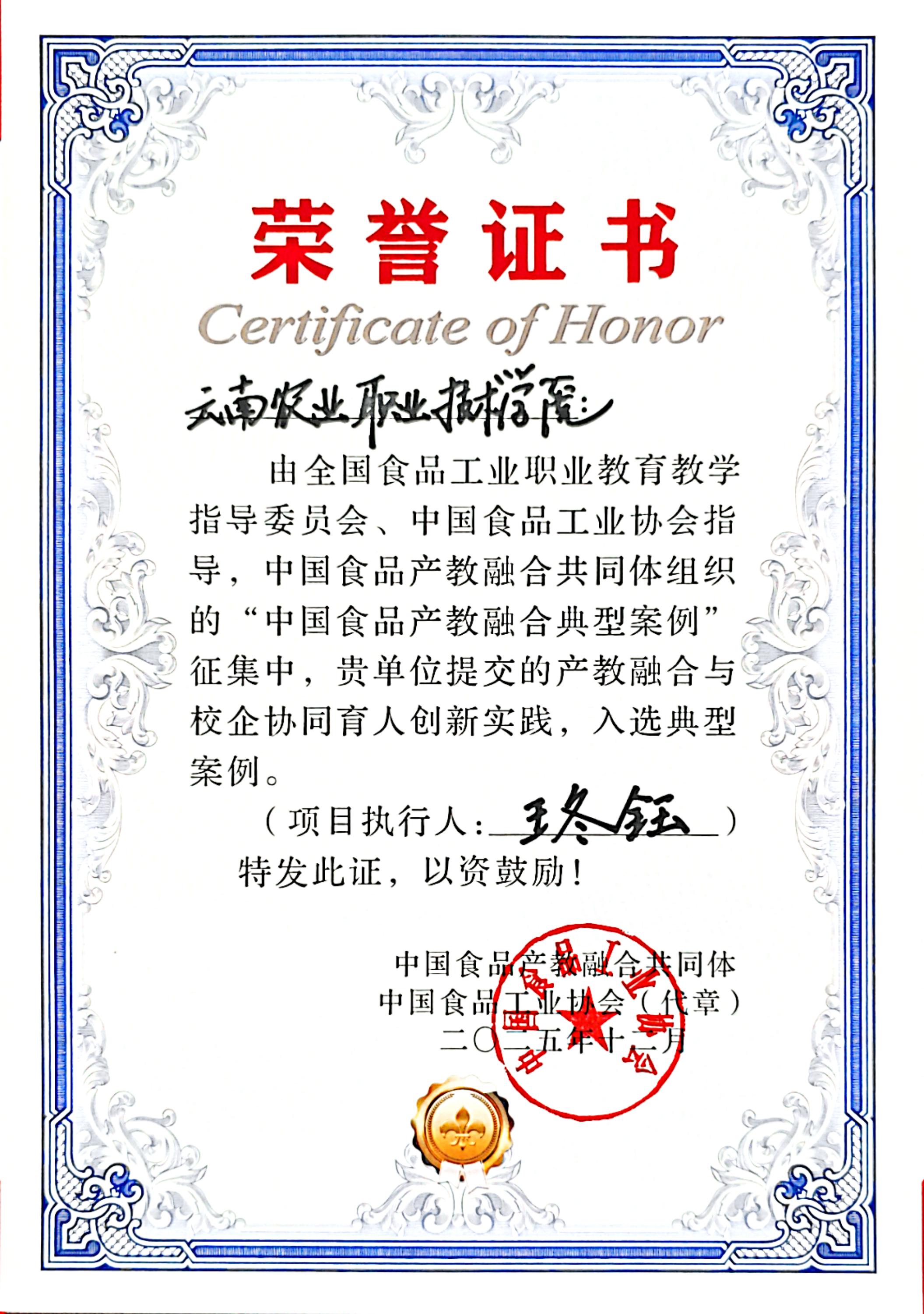 通过深入学习职业教育专业与产业动态适配、校企深度协同育人等前沿理念,深入了解江苏、山东等地在食品智能加工、预制菜产业人才培养以及职教出海等领域的创新实践。结合云南省第二期“双高”专业群建设要求,今后食品药品与大健康学院将依托云南高原特色农产品资源,深化食品质量与安全、食品智能加工技术、农产品加工与质量检测等核心专业建设,推动“双高”专业群与云南本土食品企业深度联动,把企业前沿技术、生产标准融入教学全过程,健全“岗课赛证”融通育人机制,组建校企联合技术服务团队,聚焦云南特色农产食品产业发展新趋势,助力高原特色食品产业朝着智能化、高端化、品牌化方向转型。学校将以“双高”建设为引领,依托中国食品产教融合共同体平台,汲取论坛先进经验,进一步优化专业群结构,深化校企协同育人机制,强化技术服务与成果转化能力,让“双高”专业群成为支撑云南高原特色食品产业高质量发展的“人才摇篮”和“技术引擎”,为乡村振兴战略实施和产业转型升级注入更强劲的云农职力量。(食品药品与大健康学院供稿/图文:李紫云/一审:张怀辉、二审:唐丽群、三审:杨筱莹/一校:李紫云、二校:张敏、三校:唐丽群/责任编辑:张敏)