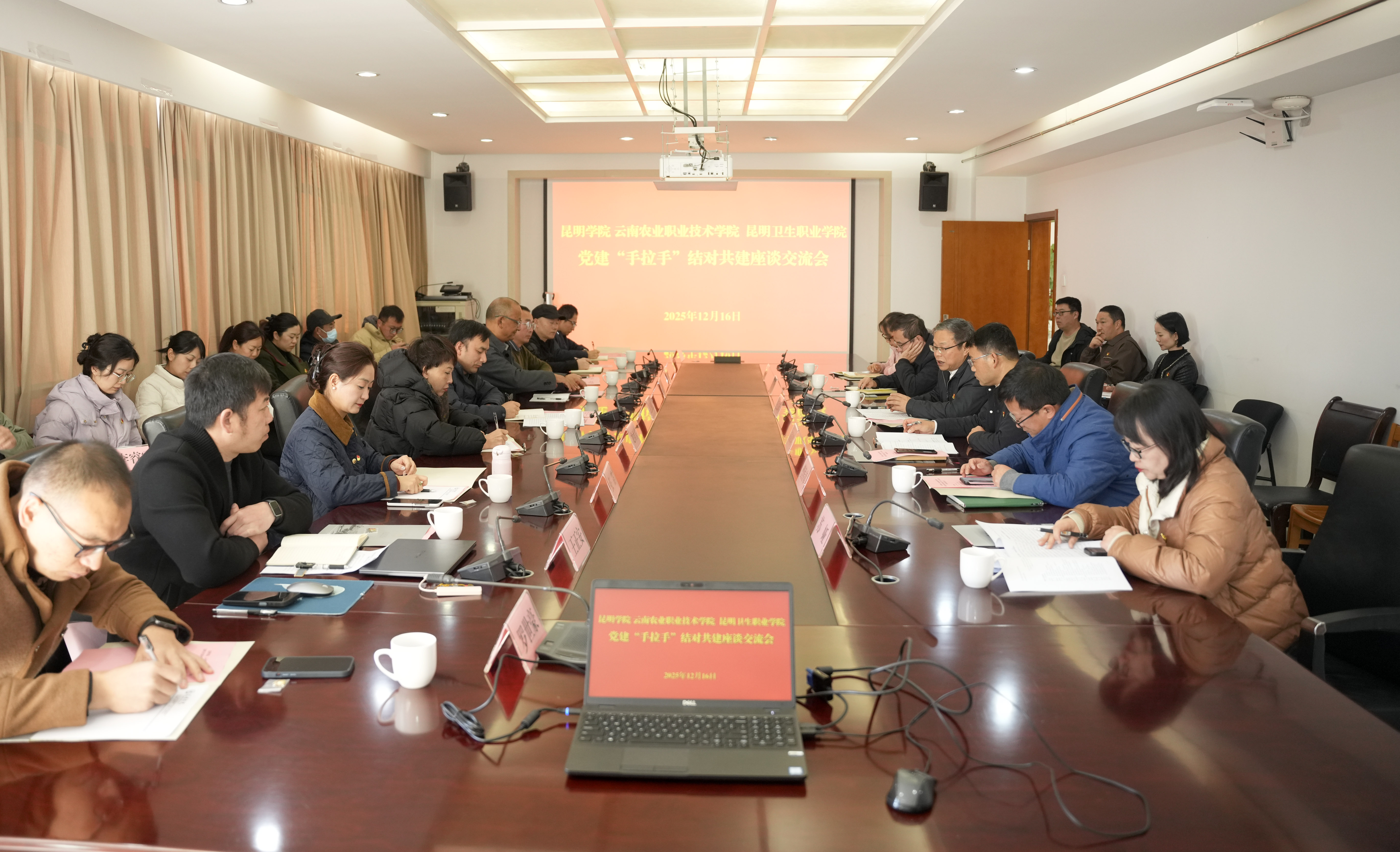 通知中心为深入贯彻落实新时代党的建设总要求,加强校际党建交流与合作,共同探索高质量党建引领高质量发展的有效路径,12月16日上午,我校与昆明学院、昆明卫生职业学院在昆明学院洋浦校区共同开展党建“手拉手”结对共建活动。昆明学院党委副书记王文成,昆明卫生职业学院党委书记(督导专员)马季昕,党委副书记、院长龙雨霏和我校党委副书记孙继先出席活动并讲话,三校组织部、相关二级党组织负责人、教师党支部书记及党员代表参加了本次活动。