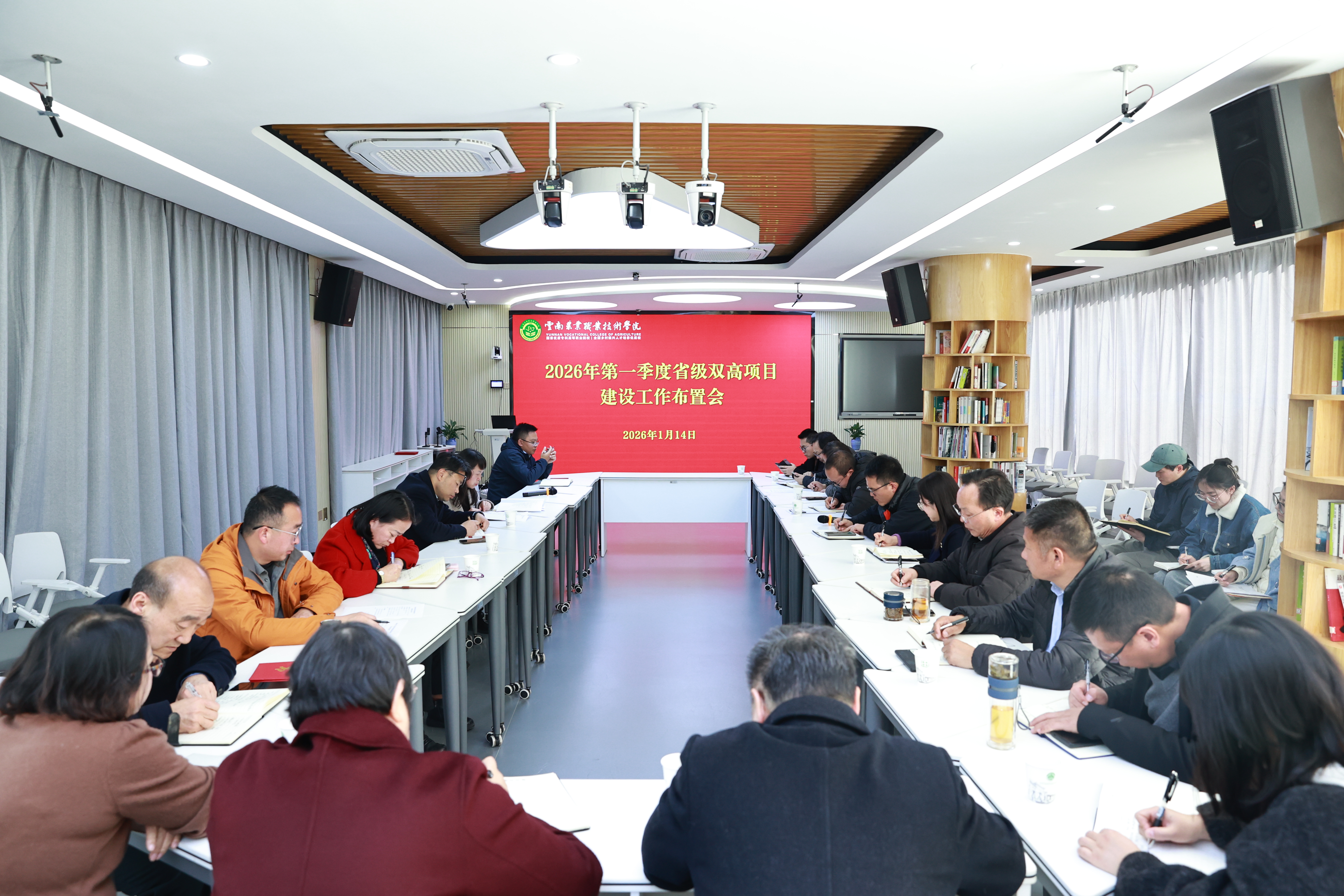 通知中心为稳步推进省级“双高计划”项目建设,系统谋划2026年度重点工作,1月14日下午,我校在教师培训中心召开2026年第一季度省级“双高计划”建设项目工作布置会。校长陈太安、副校长盛冀萍出席会议,双高办成员、项目组及双高专业群负责人、顾问专家、综合组全体成员参加会议。