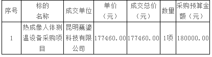 云南农业职业技术学院防疫货物-热成像人体测温设备项目询价成交公告