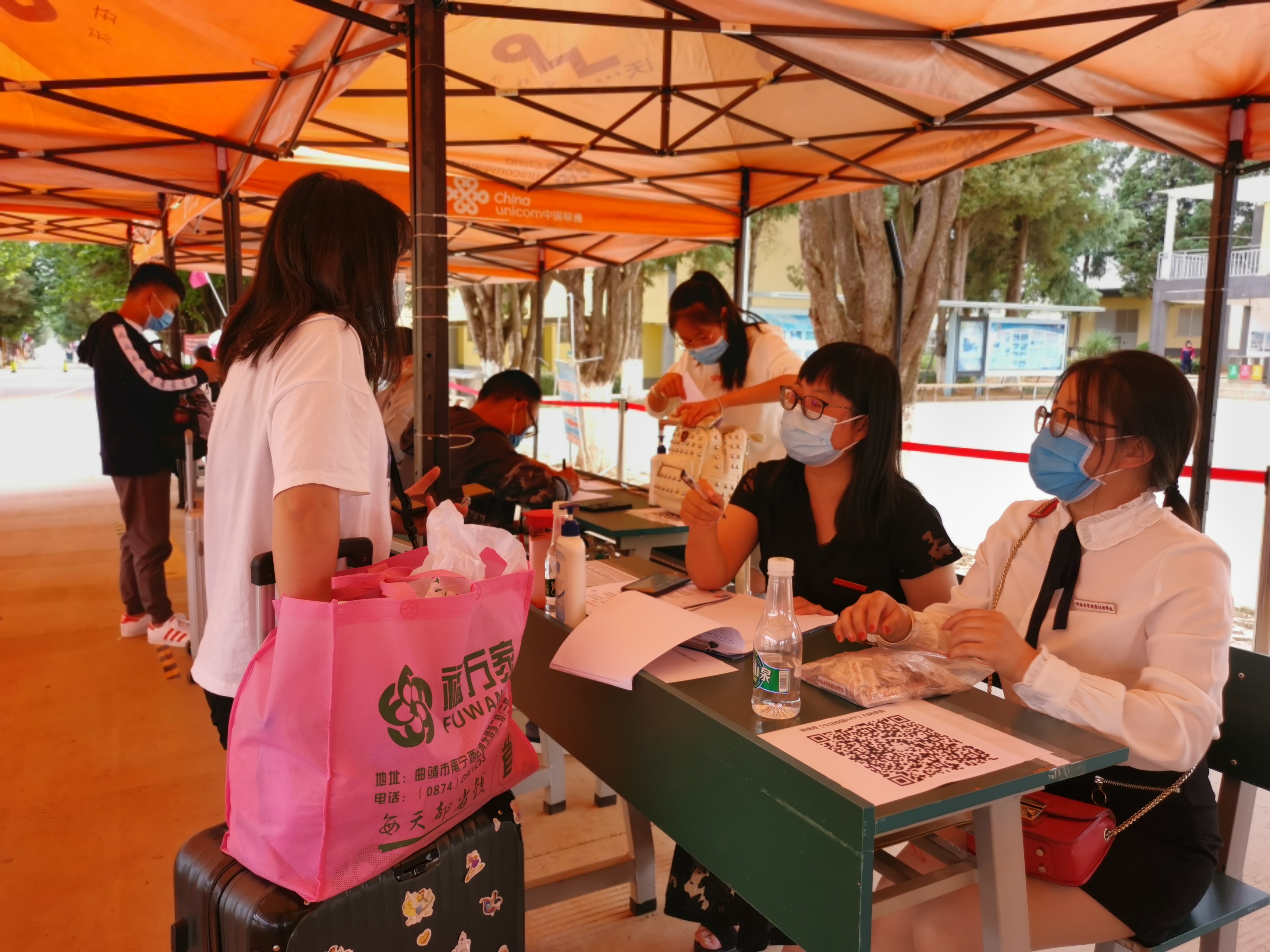 2020年5月16日,云南农业职业技术学院小哨校区食品药品与大健康学院大一学生返校,在学生返校前,学院对学生返校前、返校途中、进入学校、宿舍生活、食堂就餐、学习实训做出明确要求。学生返校当天,必须经过行李消毒-体温检测-扫码登记-向各自班级班主任递交个人信息承诺书和防控义务告知书等一系列流程,方可进入校园,若学生出现体温过高的情况,学校立即按照制定的应急方案及时处理,且学校要求学生直接回到宿舍,不得在校园内逗留。进入宿舍前宿管老师对学生进行第二次的体温检测及消毒,在学生扫描二维码后方可进入宿舍。学校还为宿舍的每层楼安排了分管老师,方便处理突发状况。