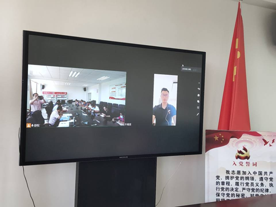 由于疫情原因,支部预备党员杨龙同志需要居家隔离,无法现场参加支部大会及入党宣誓活动。经支委讨论,本次会议开启“云”党建会议新模式,采取会议现场与网络视频同步进行的方式进行。
