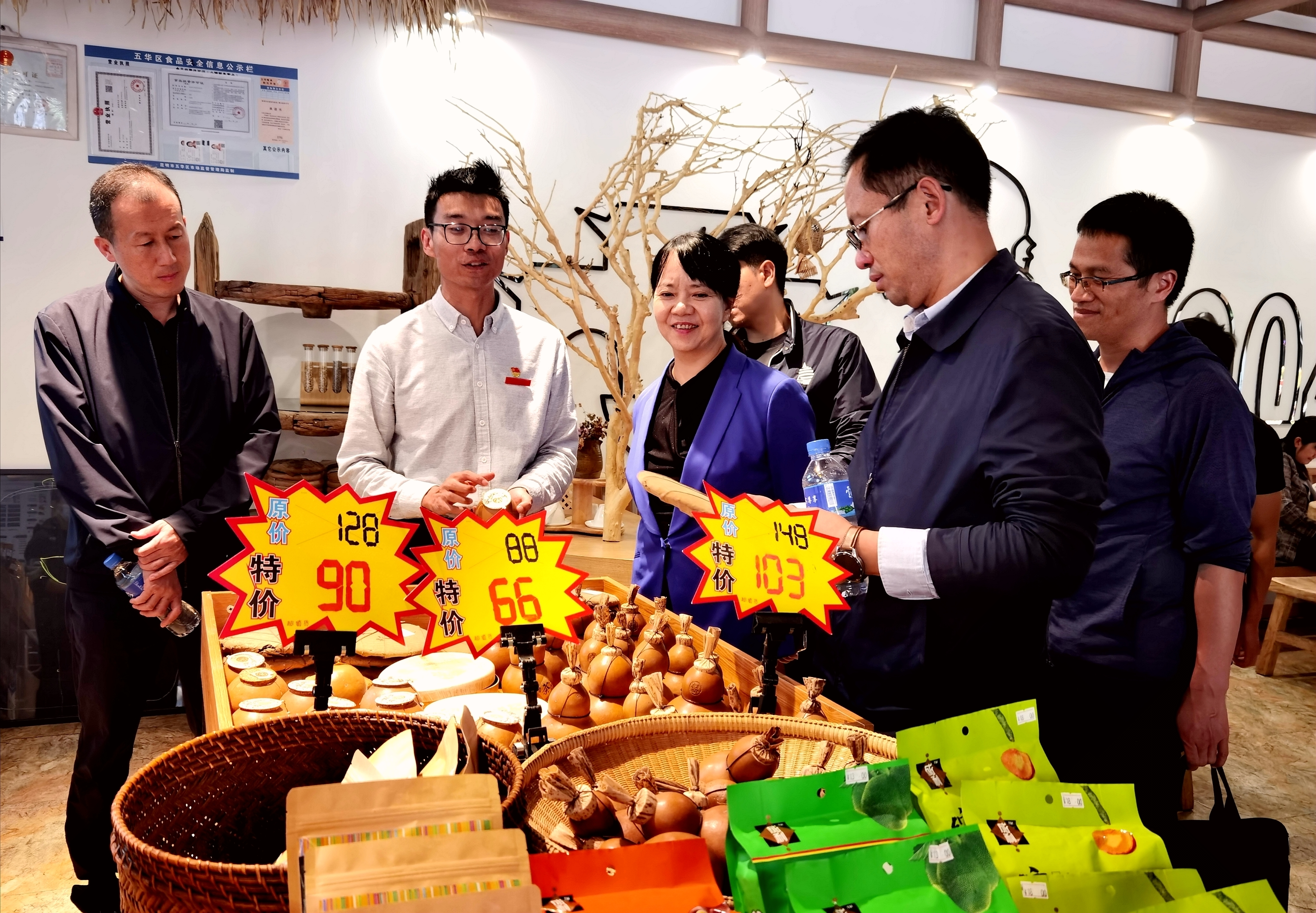 梁崑书记一行在产教联盟的负责人的带领下,先后对慧农时邦众创空间、五华区高原特色农业产业党群服务中心、五华·西翥高原特色农产品展销中心、茶兜绿色食品体验中心进行实地考查。在考察的过程中,产教联盟负责人、学院创新创业学院院长王亚楠详细向梁崑书记一行介绍我院在如何通过党建引领高原特色农品发展;积极融入五华区关于打造 “绿色食品”牌的政策;努力搭建校地共建桥梁,推动五华区乡村振兴等工作中所取得的成就。