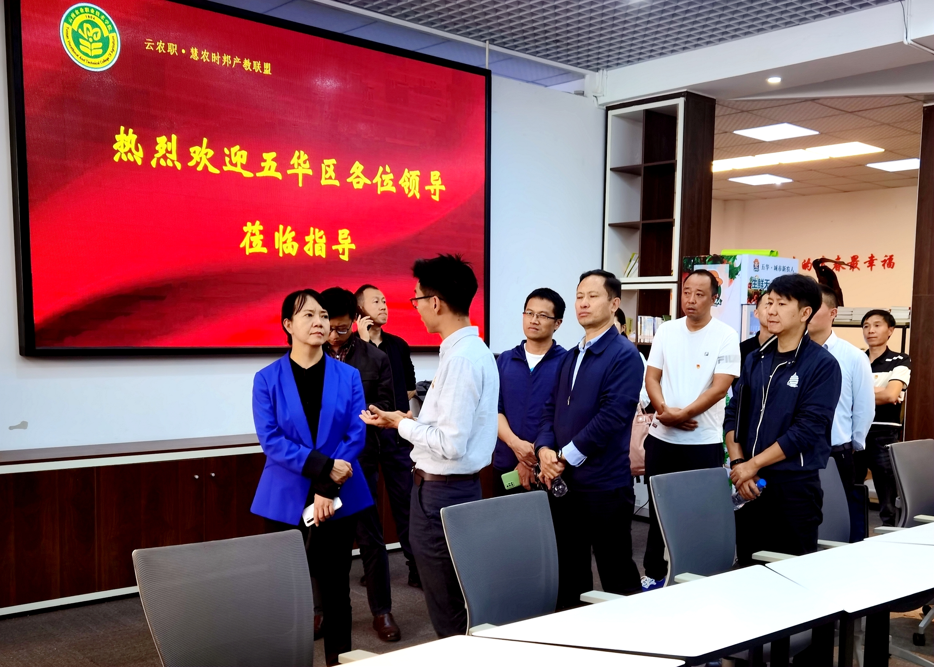 在听取完汇报后,梁崑书记表示:努力打好打响“绿色食品”是五华区积极融入到省市推动“三农”工作和乡村振兴战略的必要因素,在今年受疫情冲击的情况下,云南农职学院敢为人先,从自身实际情况出发,携手五华区有关部门,围绕“绿色食品”牌,探索出一条有利于五华区农业发展的道路来。通过发挥党员先锋示范的作用,不断强化自身本领,突破传统模式的限制,通过党建引领农业高质量的发展模式。并为我院所取得的成就表示真心地祝贺。