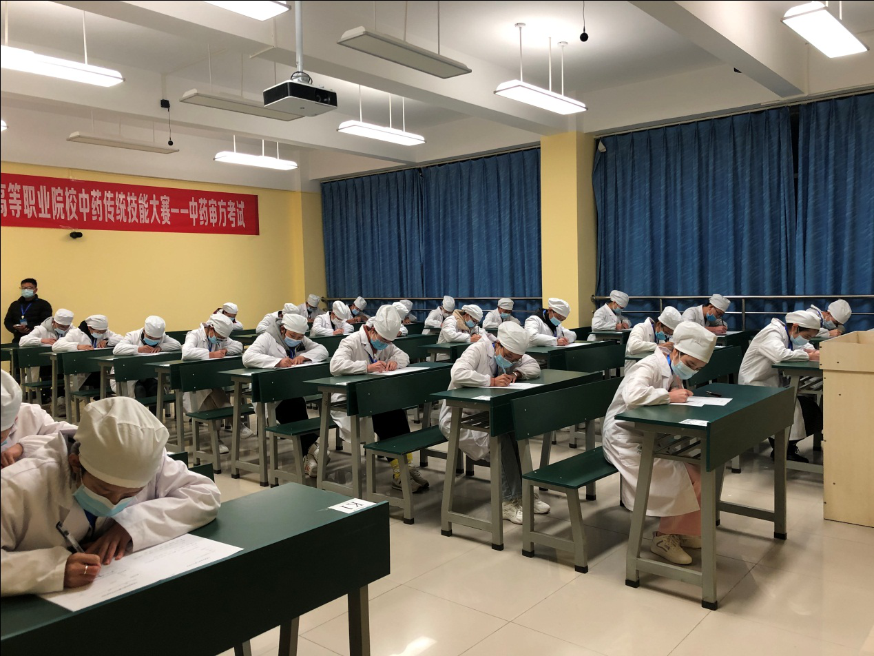 晚上19:10,中药传统技能大赛的首个赛项——审方竞赛在我校玉阶楼104进行。