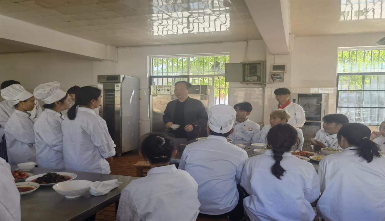 2021年3月19日,王孟宇院长在专任教师高山陪同下,再次亲临烹饪实训中心,检查设备使用、环境卫生、食品卫生、用具安全、实训管理等情况,看望了正在开展实训同学,倾听了学生意见与建议,现场解决同学提出的三个问题,与外聘教师进行了交流,观摩了现场实践性教学。王孟宇院长现场勉励同学们,要珍惜来之不易的实训条件,要用好实训设备,要多向外聘师傅学习,增强实操本领,实训中要注意安全,管理好实训室;同时,对新来专任教师提出了要求与希望。(食品药品与大健康学院/文:王孟宇/图: 高山/审核:王孟宇)